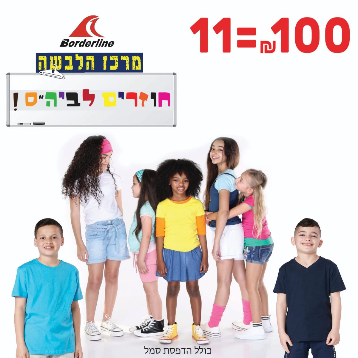 לקראת החזרה הקרבה לבית הספר קניון עזריאלי הנגב ומרכז הלבשה יצאו עם המבצע המשתלם ביותר: 11 חולצות בית ספר של חברת בורדרליין ב 100 ₪ בלבד כולל הדפסת סמל בית ספר מתנה. כך שמקבלים את החולצה של המותג האהוב בורדרליין מבלי להתפשר על איכות החולצה ובמחיר שטרם נראה כמותו בבאר שבע ובישראל. מדובר בחולצות בנים או בנות מידות 8-18 במגוון ומבחר רחב של צבעים.
