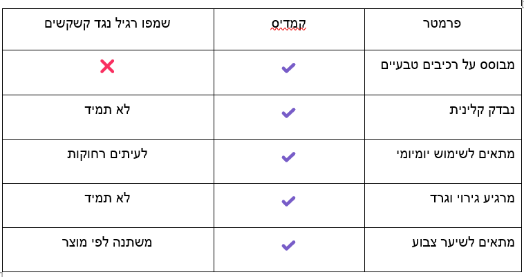 מבוסס על רכיבים טבעיים | ✔️ | ❌ |