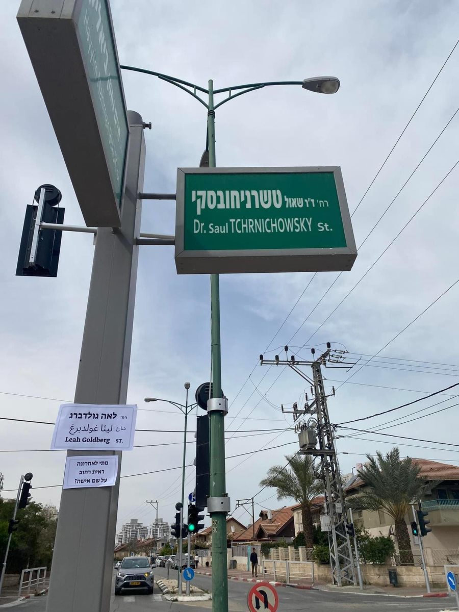 טשרניחובסקי הפך ללאה גולדברג: בתוך שלל האירועים והיוזמות הקשורים ביום האישה הבינלאומי, היה מיזם אחד שביקש להעלות על נס את העובדה שאין מספיק שמות של נשים מובילות ברחובות. כך קרה שמספר נשים אקטיביסטיות מ"הרשת באר שבע", מרשת הקהילות של ארץעיר, החליטו לעשות מעשה. בבוקר יום האישה הבינלאומי (8 במרץ) יצאו בהפגנה מגדרית שקטה, והוסיפו לרחובות שמות של נשים מובילות כמו: לאה גולדברג, מארי קירי, דבורה בארון ועוד רבות. מדובר אמנם במחאה שקטה, אך היא עוררה תגובות רבות ומפתיעות מצד העוברים והעוברות, השבים והשבות.