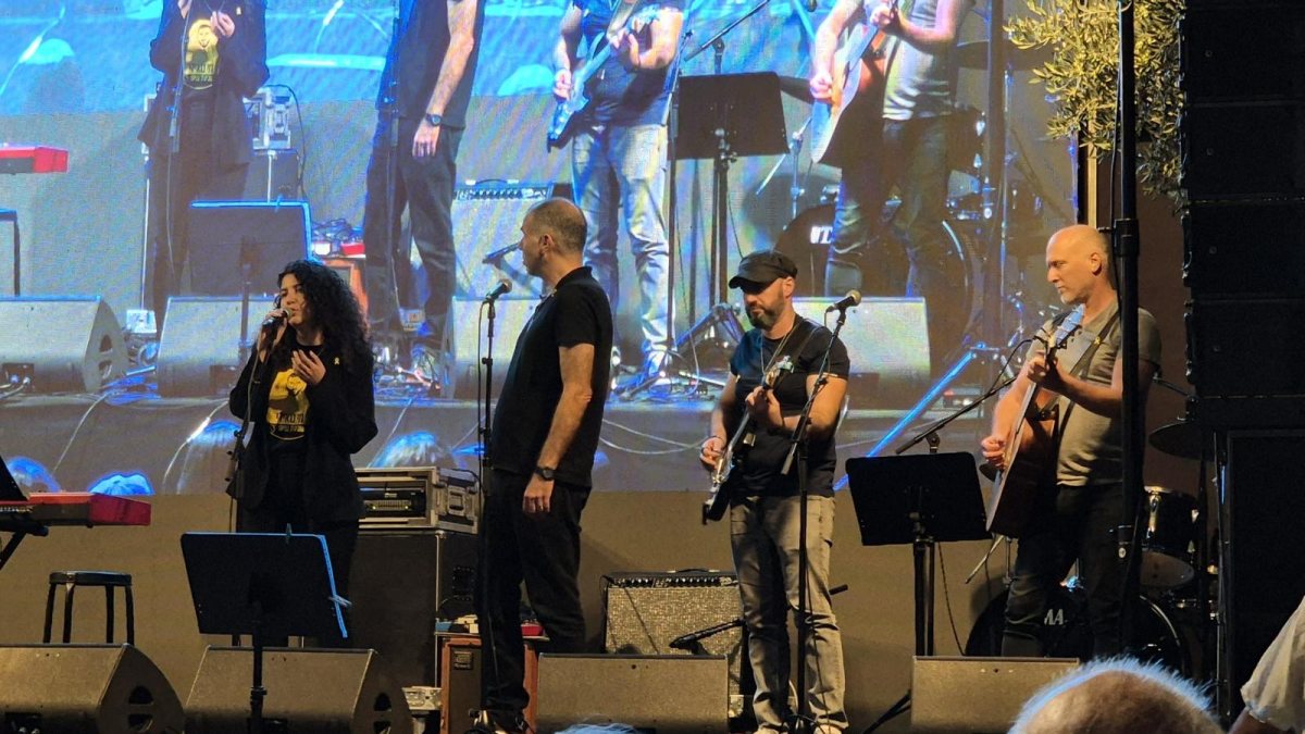 עמית מופיעה בכיכר החטופים לשיר לרני גווילי. צילום: פרטי