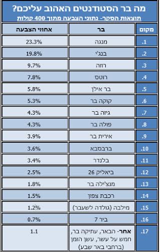 הכל כבר נשאל, אחרי שכבר התברר כמה פעמים בשבוע הסטודנטים פוקדים את הברים עם האווירה הכי טובה, ועם מי חלקם חוזרים בלילה הביתה אחרי שהוציאו כמה עשרות שקלים באותו ערב. כל מה שנשאר אחרי כל הבירורים זה לבדוק מה הבר שהסטודנטים בבאר שבע הכי אוהבים?