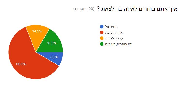 8.5% מהסטודנטים ענו כי מחיר זול מכריע לאיזה בר יצאו עם החבר'ה, ו-14.5% בוחרים את הבר הקרוב לדירתם הצנועה. מולם, 16.5% ענו כי "לא בוחרים, זורמים", כשכל ערב יכולים למצוא עצמם בבר שונה. לבסוף 60.5% מהסטודנטים הכריעו ברוב מוחלט כי בוחרים את הבר בו יש את האווירה הכי טובה, כי אין כמו אווירה של בר מפוצץ בסטודנטים אחרי יום ארוך ומייגע.