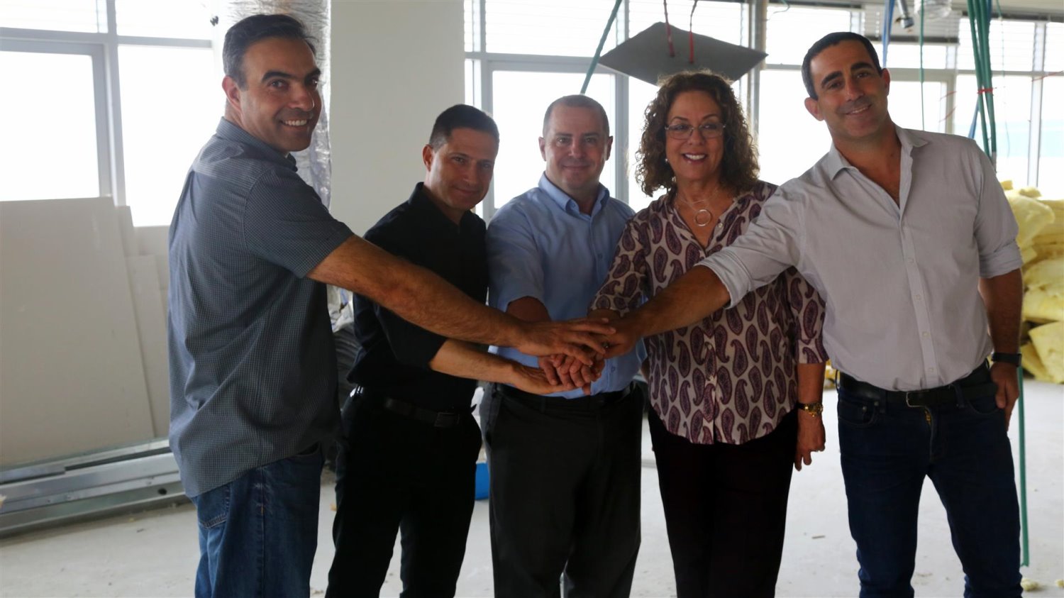 בתמונה- מנכ"ל המרכז לחדשנות דיגיטלית (CDI), זיו אופק, נשיאת אוניברסיטת בן-גוריון בנגב, פרופ' רבקה כרמי, ראש עיריית באר שבע, רוביק דנילוביץ', סמנכ"ל תפעול המרכז לחדשנות דיגיטלית, אופיר בן אבי וסמנכ"ל כספים המרכז לחדשנות דיגיטלית, בועז גור לביא בטקס הנחת אבן הפינה למעבדה. צילום: רונן מארס, המרכז לחדשנות דיגיטלית
