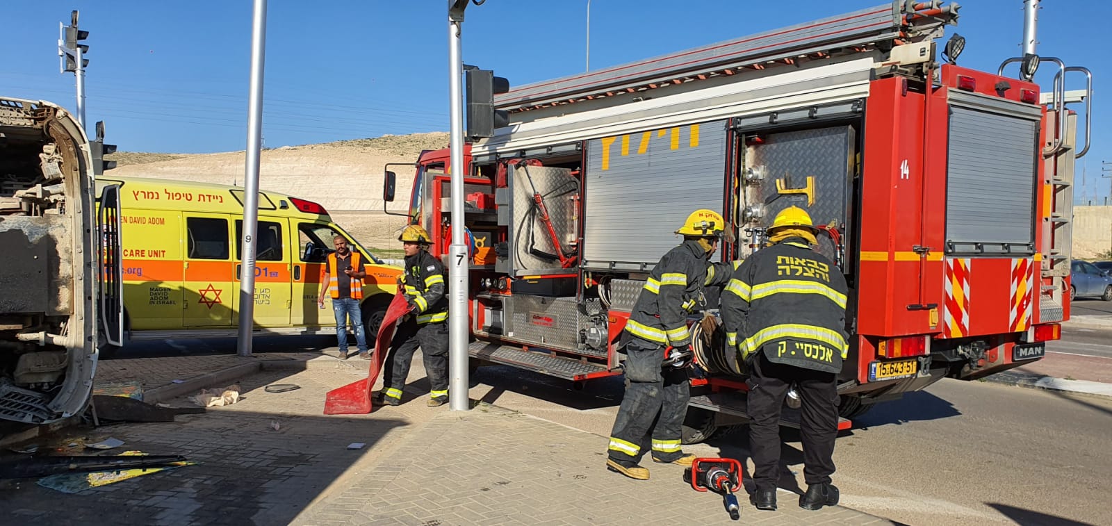 כוחות מד"א בשיתוף כוחות כבאות והצלה חילצו ופינו גבר כבן 40 לבית החולים סורוקה לאחר שהתהפך עם משאית שברשותו. מצבו קשה