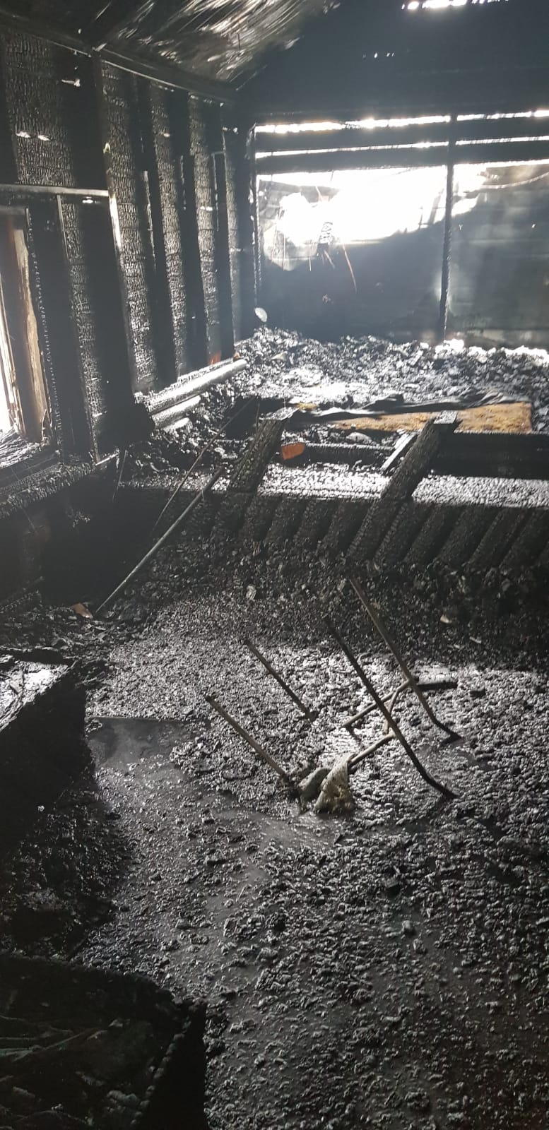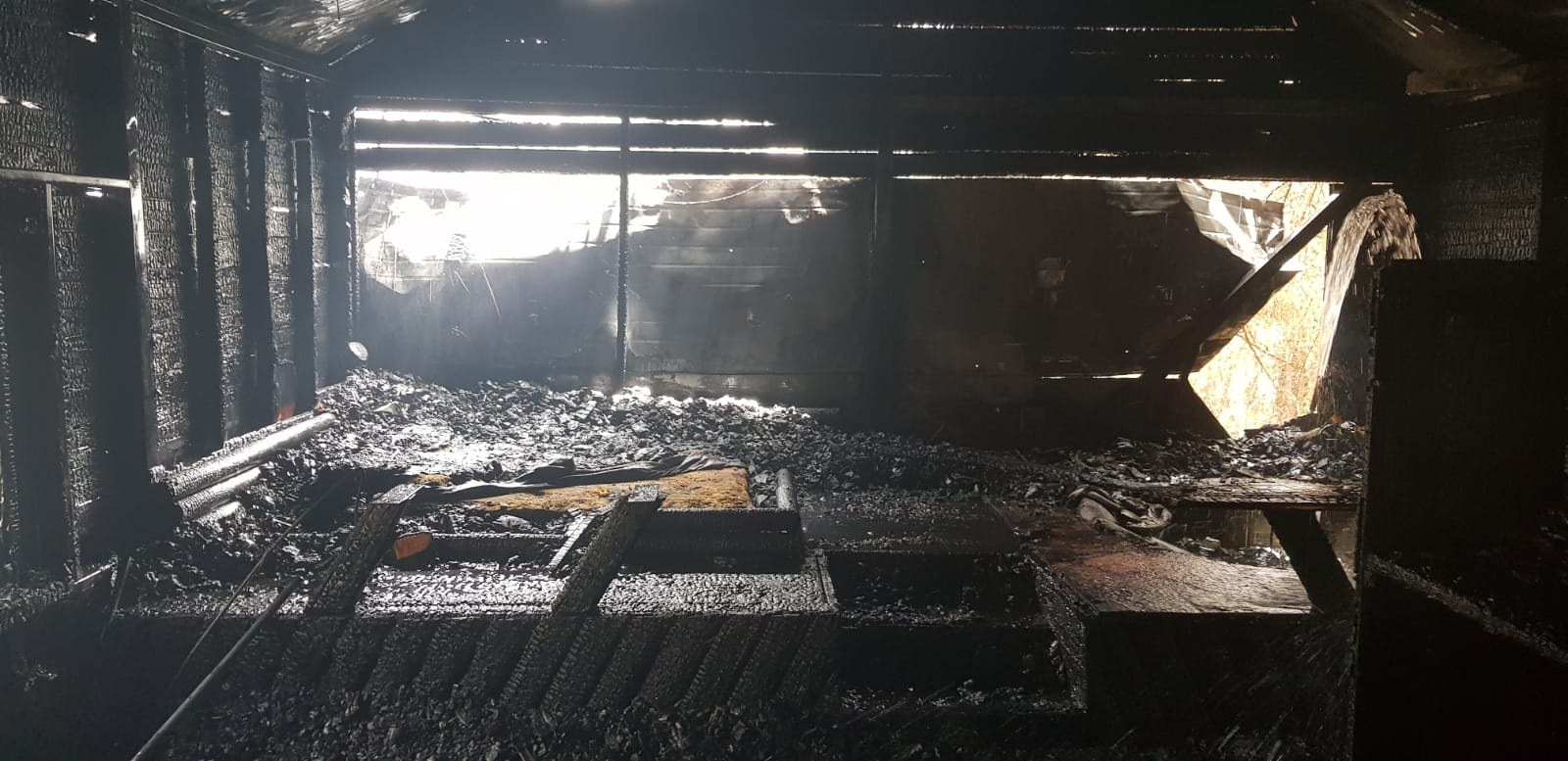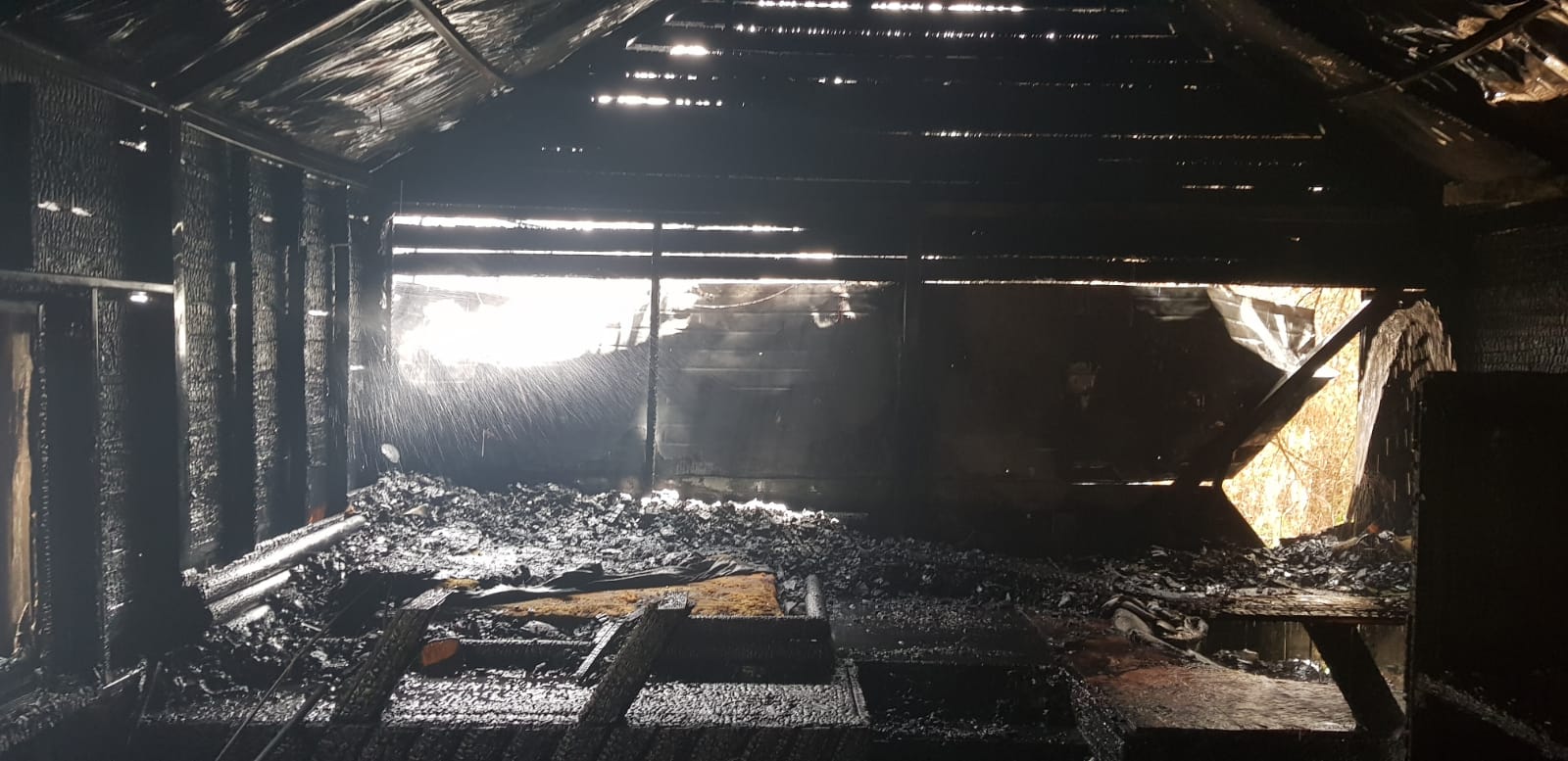 דיווח אודות צימר שנשרף כליל במושב חצבה כוחות כבאות במקום