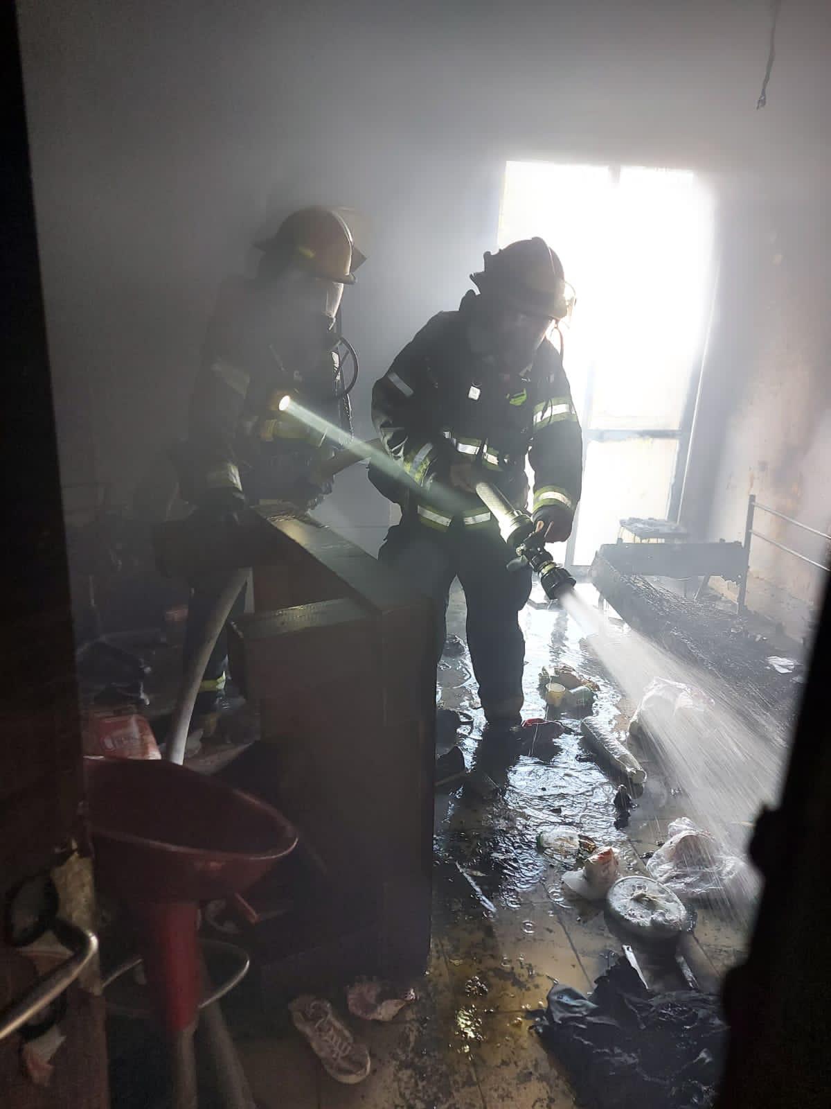שריפה בבניין מגורים ברחוב מבצע נחשון כוחות הצלה במקום