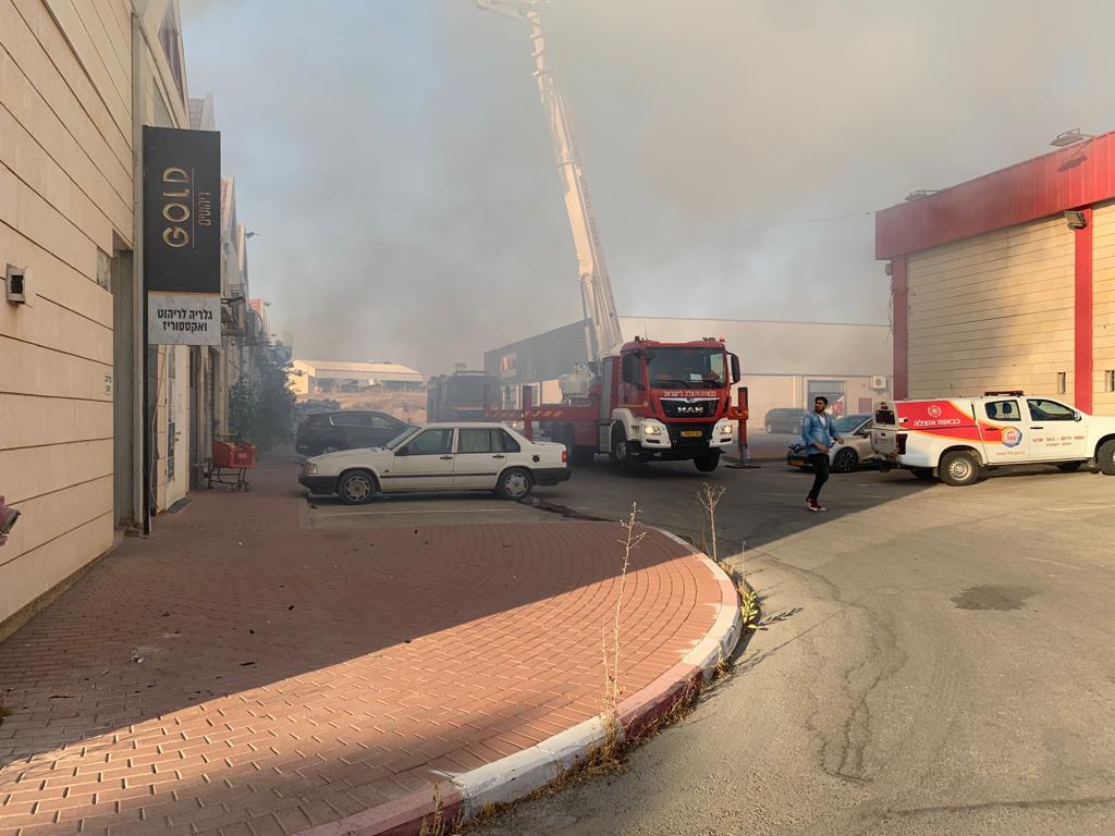 ברגעים אלו פועלים צוותי כבאות והצלה לכיבוי שריפה במחסן יונידרס
