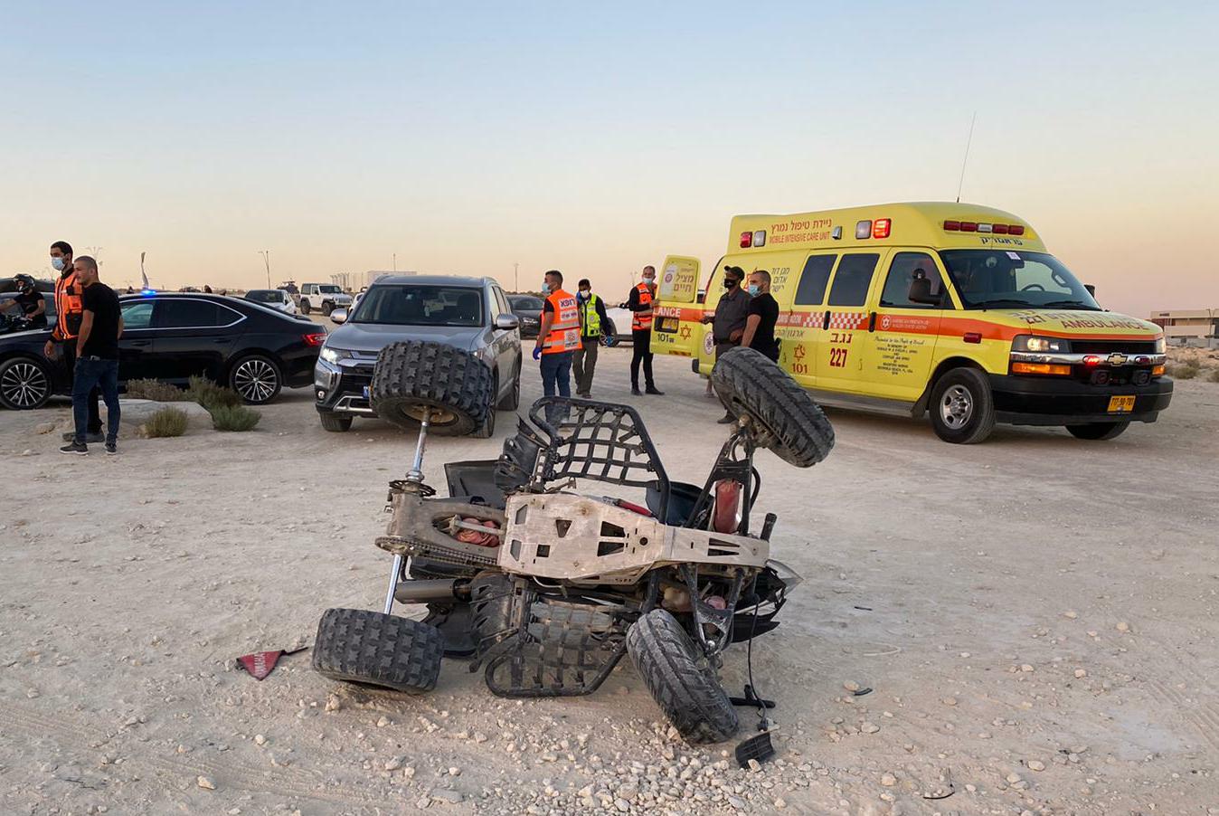 חובש רפואת חירום במד"א עומרי אבו ג'אמע סיפר: "מדובר בתאונת דרכים קשה מאוד בין טרקטורון RZR לטרקטורון רגיל שהתהפך על צידו. 2 פצועים מחוסרי הכרה שכבו על הכורכר ופצוע נוסף התהלך במקום. ביצענו הערכה ראשונית של מצבם הרפואי, שניים מהפצועים היו ללא דופק וללא נשימה ומיד התחלנו לבצע בהם פעולות החייאה שבמהלכן מצבו של אחד מהפצועים התייצב וליבו שב לפעום. הכנסנו את הפצועים לניידות טיפול נמרץ ופינינו אותם לבית החולים כשמצבו של פצוע בן 38 קריטי ומבוצעות בו פעולות החייאה ו-2 צעירים כבני 20 במצב קשה ובינוני".