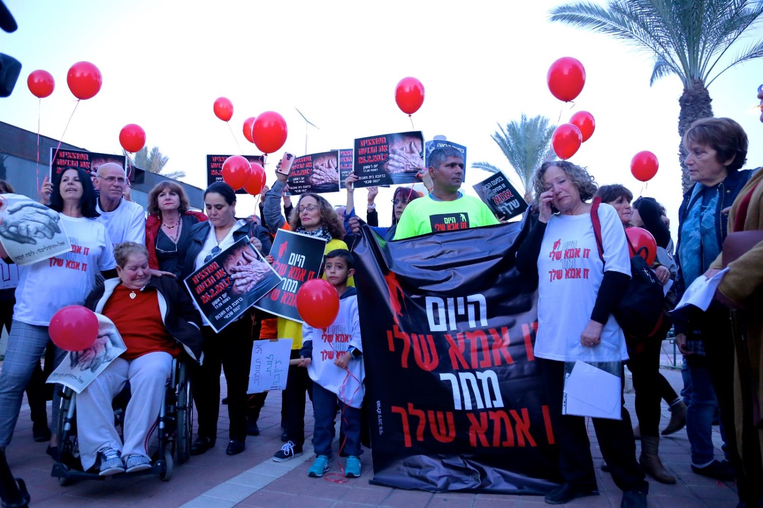 אחת ממארגנות המחאה, מיה ביידר-אקרמן, נשאה גם היא כמה מילים בהפגנה: "במשך תשעה חודשים שאמא שלי שהתה במוסד נווה שבא, העובדים כינו אותה 'מטונפת', 'מסריחה' 'חולת נפש'. הייתי מגיעה לכאן לבקר אותה ומוצאת אותה על הספסלים שמאחור, עם שתן עד החולצה, כל התחבושות של הרגליים רטובות. כשביקשתי שיחליפו לה, אמרו לי 'היא לא משתפת פעולה'".