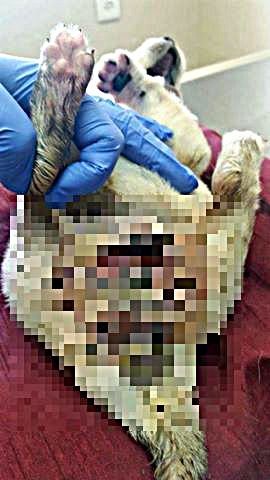 את הגורה ראה הווטרינר ביום למחרת, יחד עם שאר עובדי המרפאה. "הווטרינר אמרה שהוא בחיים שלו לא ראה מקרה כזה. התמונות ששלחה המתנדבת מעבירות את הזעזוע, אבל את לא לגמרי מבינה מהן מהי חומרת המקרה. זה היה מחזה מזעזע". במהלך היומיים האחרונים ניסו להאכיל את הגורה הקטנה וניסו לייצב את מצבה. "היא הייתה כל כך חלשה, שאם היינו מכניסים אותה לניתוח עם חומרי הרדמה- היא הייתה מתה. רצינו לחזק אותה קצת, לייצב לה את המצב, אבל היא פשוט הלכה והתדרדרה" סיפרה בצער העובדת.