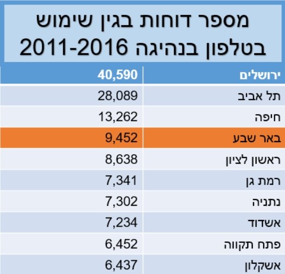 בשנת 2016 חלה עלייה של 20% במספר הדוחות על שימוש בטלפון בזמן נהיגה. בבאר שבע קיבלו 9,452 דוחות תוך 5 שנים, ובירושלים פי ארבעה, ומה קורה בשאר הערים בארץ?