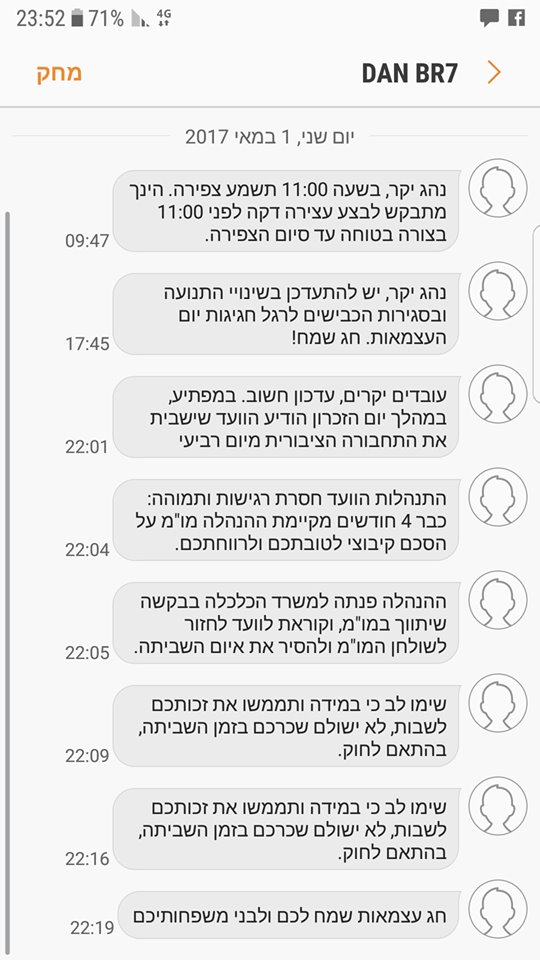 מחברת דן באר שבע נמסר בתגובה: "נציגי וועד העובדים הודיעו אתמול (יום הזכרון) להנהלת החברה, באמצעות ההסתדרות כי החל ממחר (יום ד') יפתחו בשביתה, על רקע הפערים במו"מ על הסכם קיבוצי לנהגים. המו"מ מתנהל בין ההנהלה לוועד העובדים מזה 4 חודשים, ומושקעים בו מאמצים ומשאבים רבים, כשלמול עיני ההנהלה עומדת המטרה לחתום על הסכם שייטיב ככל הניתן את תנאי העסקת העובדים. הודעת ועד העובדים במהלך יום הזכרון הייתה צעד לא רגיש. מעבר לכך, דרישות וועד העובדים חורגות באופן לא סביר מתנאי ההעסקה המקובלים בענף התחבורה הציבורית, והיענות מלאה להן עתידה לסכן את עתידה הכלכלי של החברה. לאור זאת הנהלת החברה מתנגדת לשביתה ופועלת למניעתה, בין היתר באמצעות פניה למשרד הכלכלה בבקשה להמשיך במו"מ בתיווכו".