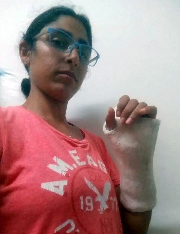 עינב, צעירה בת 24 המתגוררת ברחוב, נפלה על המדרכה לפני כשבועיים ושברה את ידה "יצאתי מהבית והלכתי על הדרך חתחתים הזו, פשוט נתקעתי באבן כלשהיא על המדרכה, נפלתי והיד שלי נחבטה באבנים. הלכתי לעשות צילום וגיליתי שיש לי שבר ביד ומאז אני עם גבס".