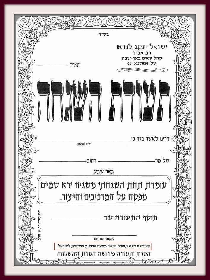 רב מוכר בבאר שבע נתבע בטענה כי נתן תעודות כשרות לבתי עסק בעיר שלא באישור הרבנות הראשית לישראל. עורכי דינו "זו תביעה חסרת שחר, מדובר ברב מוכר ומלומד במגזר החרדי שבקיא בחוקי ההלכה, אין מניעה חוקית מהענקת תעודות השגחה על ידו".