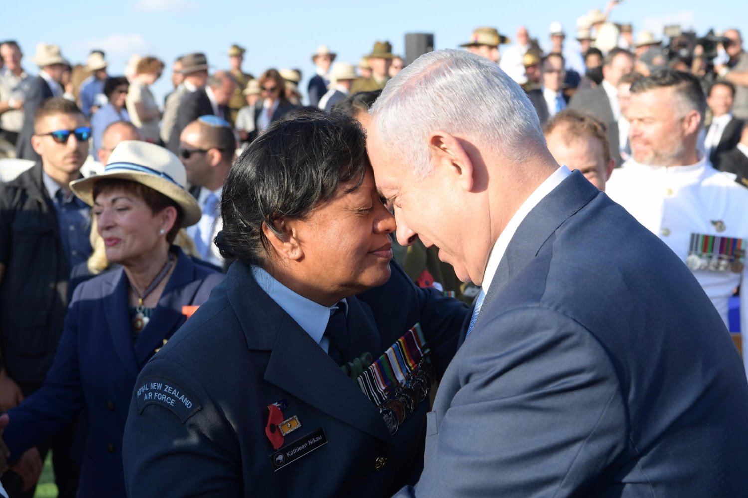 נתניהו אף חלק 'נשיקה מאורית' (ברכת כבוד ניו זילנדית מסורתית) עם מושלת המדינה ואורחים, פרסם תמונות שלו – וכתב: "כך, לפי התרבות המאורית בניו זילנד, נפרדים לשלום מחברים – עד לפגישה הבאה! תודה לידידנו שהגיעו לישראל כדי לציין איתנו 100 שנים לשחרור באר שבע".