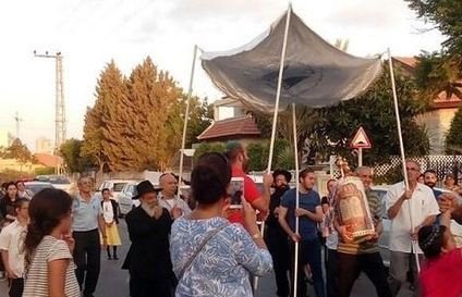 בשעה היעודה יצאה תהלוכת ספר התורה מבית המשפחה, לעבר בית הרב רוט ברחוב הרב קפאח, בנאות לון, שם נאספו תושבי השכונה לתפילת מנחה חגיגית ולאמירת לחיים.