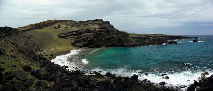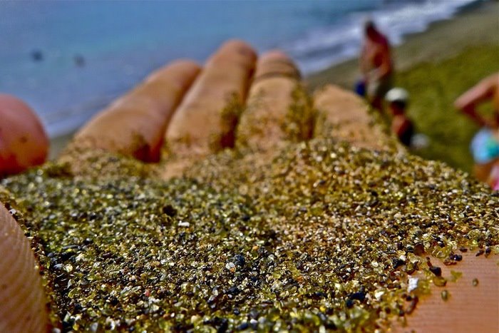 החול הירוק של חוף זה מורכב ברובו מגבישים זעירים של מינרל בשם אוליבין. הגבישים הזעירים נפלטו מהר געש סמוך המתאפיין ביריקת לבה עשירה במינרל הירקרק.