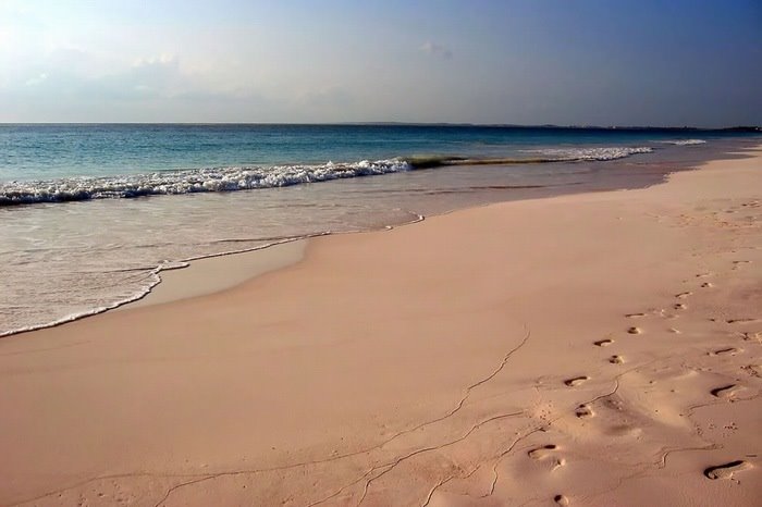 גם חוף זה צבוע בגוונים נפלאים של ורוד שהופכים את נוף החוף והים ליצירת אומנות מן הטבע.