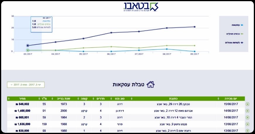 מיזם נדל"ני חדיש מאגד נתונים על עסקות הנדל"ן ברחבי הארץ ומאפשר לקבל תמונה רחבה על שוק הנדל"ן באזור מגוריכם. בכירי החברה: "פיתחנו אלגוריתמים מיוחדים המאפשרים לקבל תמונה מקיפה ומדויקת על שוק הנדל"ן.