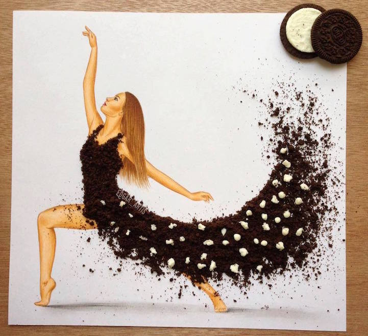 בחשיבה מחוץ לקופסה, לקחת המאייר אדגר ארטיס מזונות שמצא בביתו ו"הלביש" באמצעות שוקולד נוטלה, אפונה, בצל, פיטריות ועוד נשים בשמלות ועיצובים אופנתיים מדליקים ולא שיגרתיים.