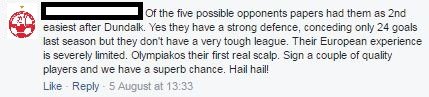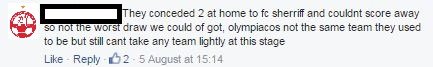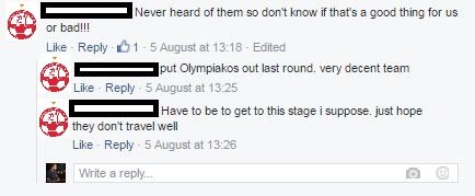 -הם ספגו 2 גולים בבית מול שריף ולא הבקיעו בחוץ (מול אולימפיאקוס), אז לא ההגרלה הכי גרועה שיכלנו לקבל, אולימפיאקוס לא אותה קבוצה כפי שהייתה פעם, ועדיין לא להקל ראש באף קבוצה בשלב הזה.