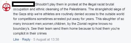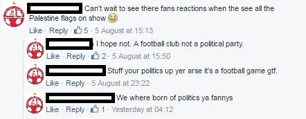 -דחוף את הפוליטיקה שלך עמוק לת*ת, זה רק משחק כדורגל.