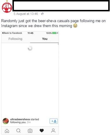 וכמובן, אנחנו לא היחידים שיצאנו להשיג מעט מידע מהאוהדים, גם דף האינסטגרם 'אולטראס ב"ש' אשר מעלה תכנים על סצינת האוהדים בעיר יצא למשימת מודיעין משלו, אבל מהר מאוד מישהו שם עלה על זה ושיתף