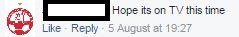 מקווה שהפעם ישדרו את זה בטלוויזיה.