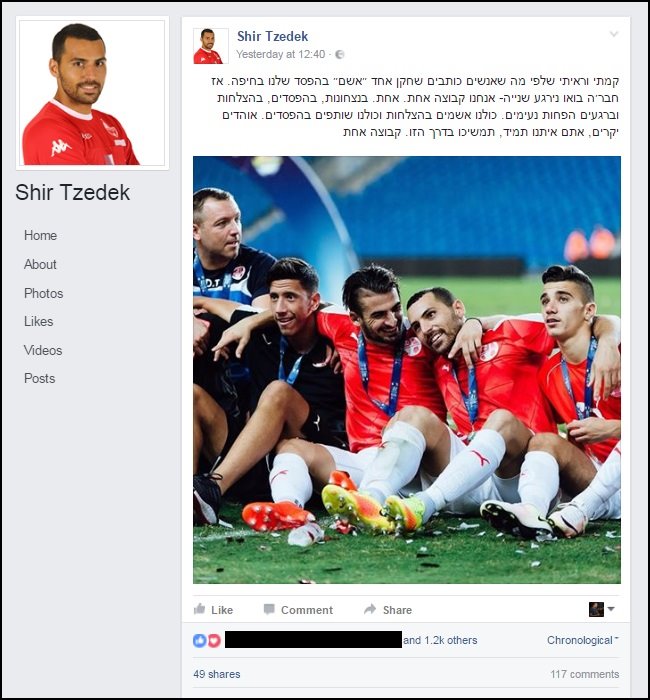 עד כמה העליהום היה גדול? ניתן להיווכח מכך מהודעתו של  שיר צדק שנחלץ לעזרת חברו לקו ההגנה והעלה פוסט להרגעת המצב בפייסבוק. "קמתי וראיתי שלפי מה שאנשים כותבים שחקן אחד ״אשם״ בהפסד שלנו בחיפה", כתב צדק והוסיף: "כולנו אשמים בהצלחות וכולנו שותפים בהפסדים. אוהדים יקרים, אתם איתנו תמיד, תמשיכו בדרך הזו"