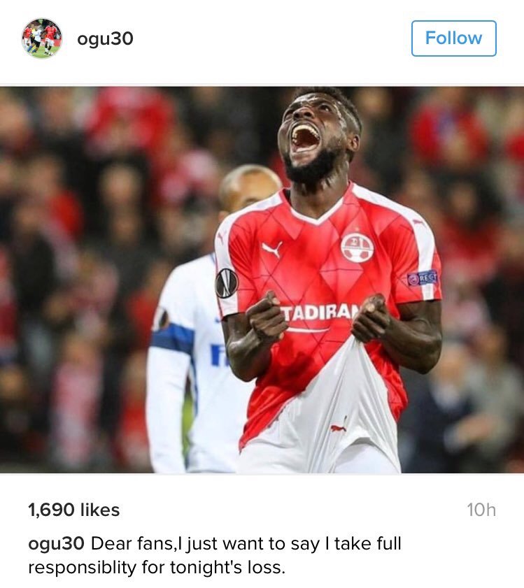 מי שכן הרגיש שהוא איכזב את הקהל היה הקשר ג'ון אוגו. אוגו הציג אתמול משחק לא מדוייק והרבה לאבד כדורים, כולל הכדור שהוביל לשער הניצחון של הפועל רעננה. אוגו, שבדרך כלל מראה אמוציות על המגרש, היה השחקן הראשון שניגש לקהל שהגיע לאצטדיון והתנצל בפנייהם. מאוחר יותר העלה פוסט לאינסטגרם ובו כתב "אוהדים יקרים, אני רק רוצה לומר שאני לוקח אחריות מלאה על ההפסד"