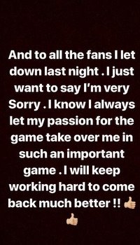 אוגו עצמו נכח היום בביקור מסחרי של שחקני הקבוצה במתחם איקאה שאמור להיפתח בבאר שבע בסוף החודש, ולא נראה שמח כהרגלו. לאחר מכן, שלח הודעת התנצלות דרך הרשתות החברתיות: "אני מצטער. אני יודע שאני תמיד נותן ללהט המשחק להשתלט עליי במשחקים כאלה חשובים. אמשיך לעבוד קשה כדי לחזור טוב יותר"