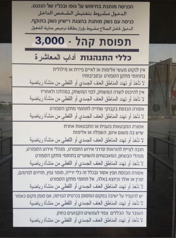 השלטים שמציגים את "כללי ההתנהגות" בתוך ההיכל בעיר מציגים כללים שונים בעברית, אבל אותו משפט בערבית. מחברת כיוונים אשר אחראית על היכל הקונכייה נמסר: "נתקן"