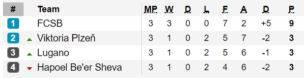 בתוך 5 דקות (69, 63) לוגאנו עלתה ליתרון כפול ומפתיע. בדקה ה-75, קרמניץ', החלוץ של ויקטוריה פלזן, צימק את התוצאה ל-1:2. 2 דקות לסיום המשחק – הייתה זו שוב לוגאנו שכבשה, 1:3 ועד לסיום פלזן הצליחו לצמק. תוצאת הסיום הייתה 2:3 לשוויצרים. התוצאה למעשה פותחת את הבית של הפועל באר שבע, שכעת 3 מתוך 4 הקבוצות בו עם 3 נקודות/