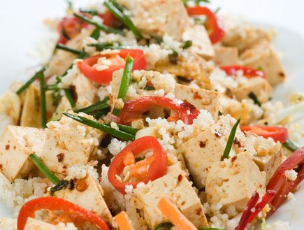 4. מפזרים מעל את נתחי הטופו ומגישים קר.
