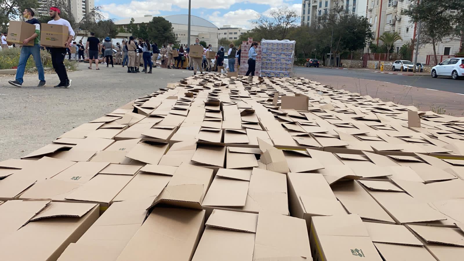 ביום החלוקה שנערך אתמול, הגיעו לעזור כל כוחות הבטחון, צה"ל, משטרה ולוחמי האש, וכמובן תושבי העיר שכללו ילדים ומבוגרים.
