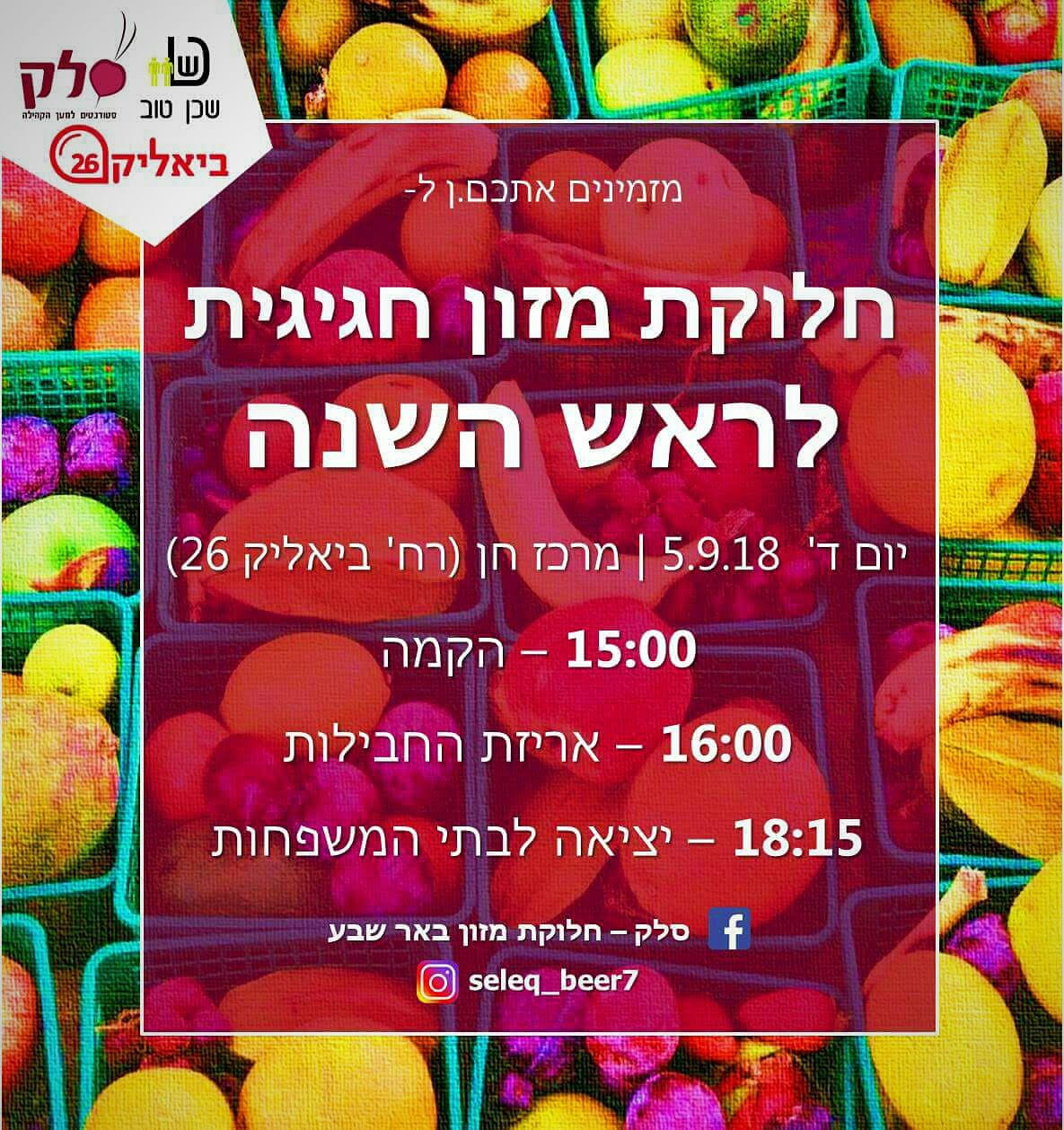 כעת רגע לפני ראש השנה וסוכות מגבירים חברי סל"ק את פעילותם ברחבי באר שבע, במטרה לוודא שאף משפחה לא תשב סביב שולחן חג ריק. הם עוברים בין בעלי עסקים בעיר שנרתמים אהבה גדולה פעם אחר פעם ותורמים מוצרים, מגיעים עד לכל אדם פרטי שמעוניין לתרום וכמובן מעניקים מעצמם.