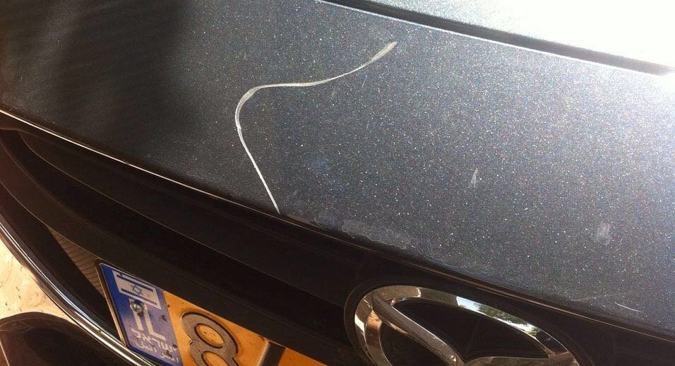 משפחת רבינוביץ' התעצבה לגלות שריטה חדשה על רכבם: "יום אחרי הקנייה של הרכב גיליתי אותו כשהוא 'מקושט' בשריטה חדשה ומעוצבת בקפדנות. ראינו שעשו את זה תלמידי תיכון מהטכני אבל לא יכולנו לזהות מי מהם זה היה".